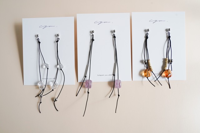 ご購入前の注意事項を必ずお読みください。 size→11cm 素材→パープル アメジスト 他 ビーズ ポスト部分→チタン ビーズ、天然石によって個体の色味に差が出ますのでご了承ください。